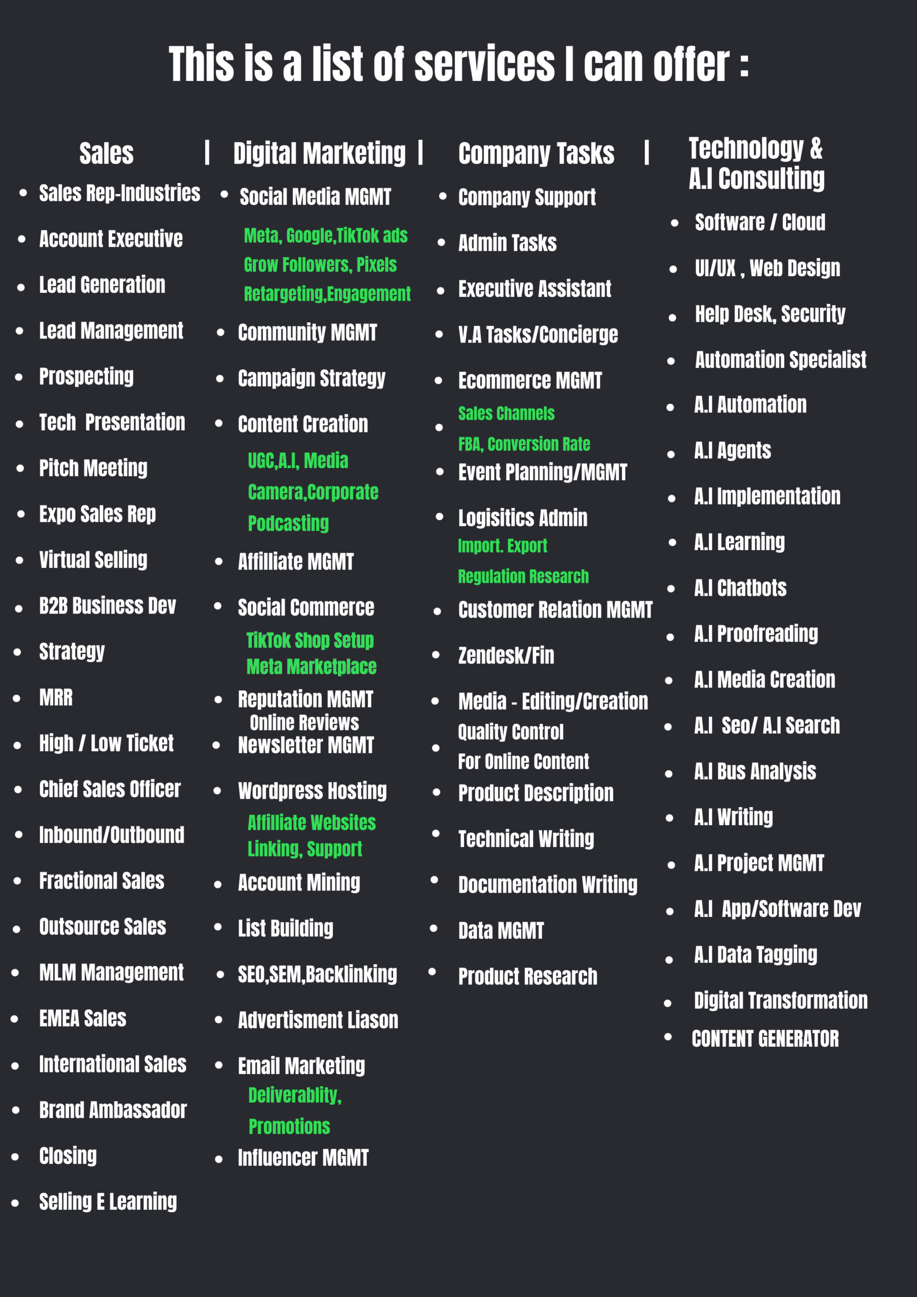 If first step goes well, I will set up all HR, project software for monitoring my efforts and for rapid responses to clients requests. I will then plot out tasks to be complete. These can be added and subtracted as the client needs.